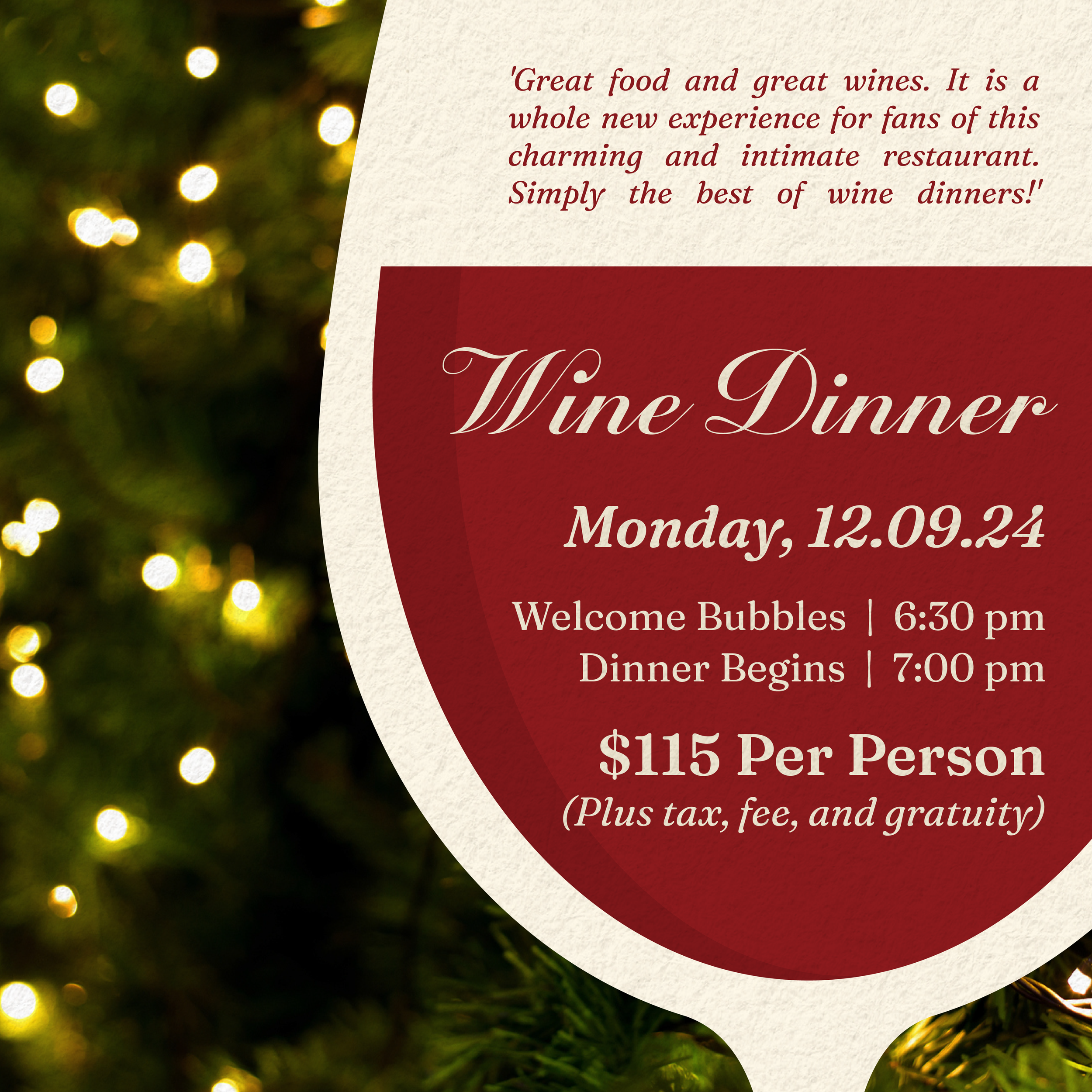 Join us at Napa Flats Bistro on Monday, December 9th for a Holiday Wine Dinner featuring special, select Spanish wines. Reserve your seat today!